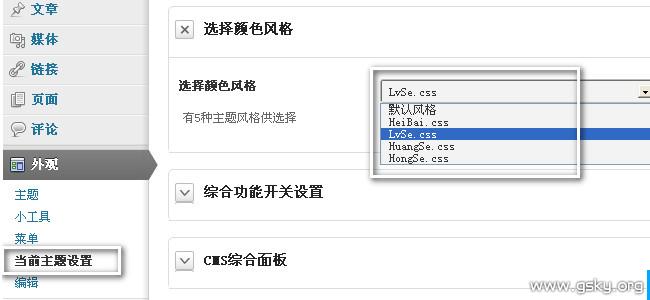 安装选择主题之后,点击后台侧边栏上面“当前主题设置”进入主题设置界面。