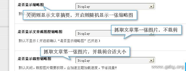 可以自定义显示设置,也可以随即显示缩略图,更可以抓取文章第一张图片作为缩略图,甚至支持缩略图自动裁剪功能。