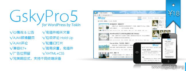 注意注意!新的一波逆袭来临了!GskyPro1的失败是无法浇灭我对新主题的渴求的!挫败阻挡不了我前进的脚步!G2、G3仅仅只是我憋大招的产品,在经历了漫长的历练时间后,GskyPro5诞生了,价格是极低的,主题也是极好的,你仅仅需要花¥18元,不到一本书的价格,就可以吧博客打扮的漂漂亮亮~~~
