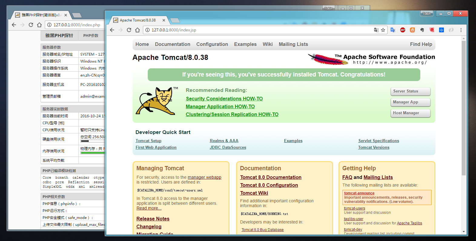 同时访问:http://127.0.0.1:8000/index.php 和 http://127.0.0.1:8000/index.jsp